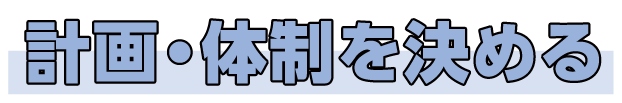 基本方針に沿って、イベントの実施・広報活動・記念品の作成・地域貢献など、何を実施するかを計画し、役割分担を明確にします。
