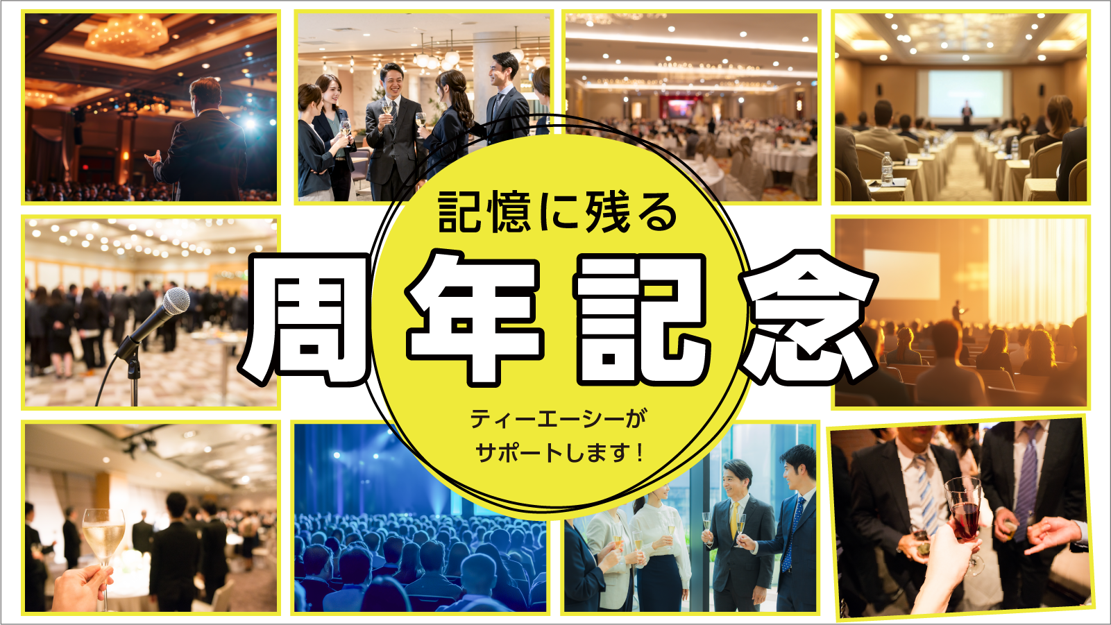 企業の方針説明会をはじめ、表彰式・記念式典・運動会など数多くのイベント実績があるティーエーシーが周年事業の成功をトータルでサポートします。